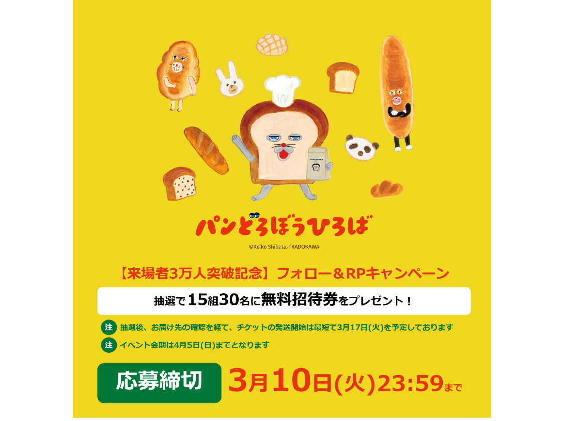 3万人突破を記念して、「パンどろぼうひろば」公式Xでは無料招待券が当たるキャンペーンもスタート。